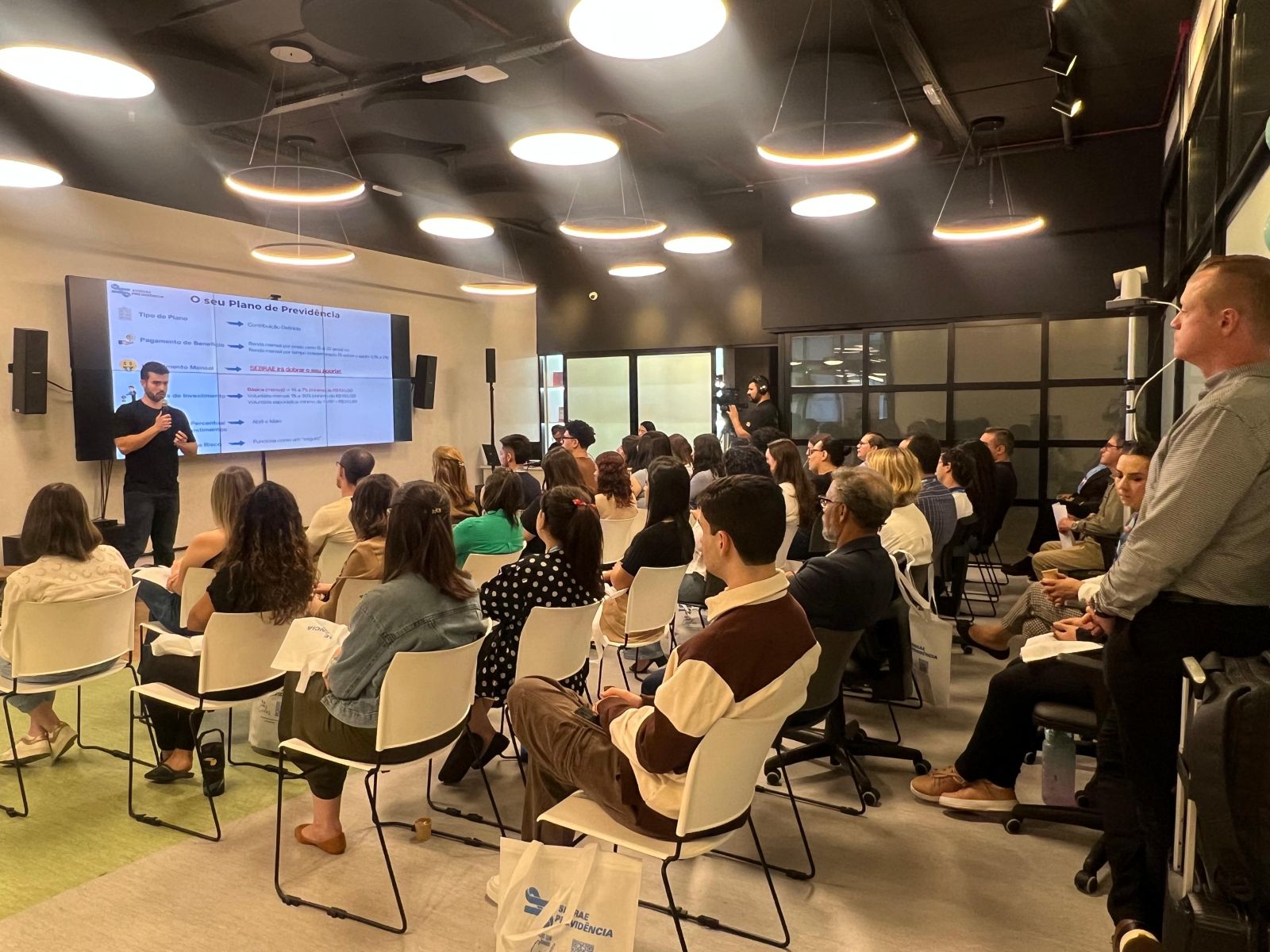 No dia 25, o analista de Seguridade Dan Rodrigues conduziu uma palestra presencial sobre o plano Sebraeprev, destacando seus benefícios, regras de funcionamento e diferenciais.