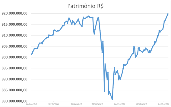 Passado o primeiro trimestre do ano, no qual o sistema financeiro global passou por uma enorme turbulência, resultado dos impactos econômicos da pandemia do COVID, o Sebrae Previdência já apresenta crescimento patrimonial no ano de 2020. O patrimônio já atingiu seu valor máximo histórico, no dia 08 de junho de 2020, superando o valor de R$ 919 milhões - no final do ano de 2019 era de cerca de R$ 910 milhões.