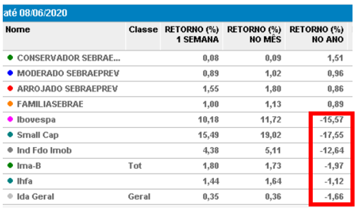 O desempenho reflete a excelente estratégia de diversificação da carteira, além de ações pontuais na gestão de investimentos que utilizou de instrumentos financeiros disponíveis no mercado para mitigar os efeitos mais perversos da queda de preços dos ativos, bem como de algumas ações tempestivas que visavam aproveitar algumas oportunidades nos momentos de recuperação de preços. Adicionalmente, a Diretoria do Sebrae Previdência destaca como resultado do crescimento patrimonial a continuidade no processo de captação de recursos (portabilidade), que no primeiro semestre deste ano supera o movimento ocorrido no mesmo período do ano passado e contribuiu para o crescimento de 25% do patrimônio do Plano Valor Previdência.