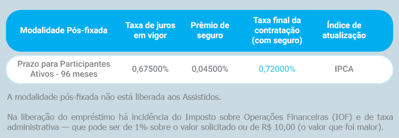 A modalidade pós-fixada não está disponível para os participantes Assistidos.
